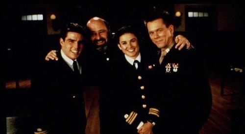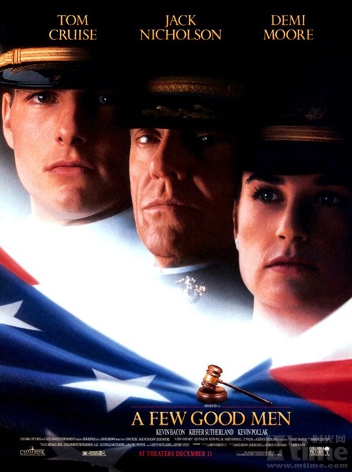 軍隊(duì)一向是具有神秘感的,正因如此,它中間更隱藏了一些不可見人的罪惡。嚴(yán)格的等級(jí)使正義在這里更難伸張,好壞在這里難以區(qū)分,是非標(biāo)準(zhǔn)模糊難定。這同時(shí)也是吸引觀眾積極參與的原因,把憑借權(quán)力作惡的卑鄙上級(jí)最終繩之以法,固然平了觀眾的怒氣,但在現(xiàn)實(shí)中,這實(shí)際上是很難實(shí)現(xiàn)的?!读x海雄風(fēng)》中明星薈萃,湯姆·克魯斯成功地扮演了一位正義的律師形象,他從容鎮(zhèn)定, 堅(jiān)持真理, 在法庭上侃侃而談,步步緊逼,使真正的罪犯無處循形;杰克·尼科爾森則是老戲重唱,再一次出演典型惡棍的形象,狡詐、陰險(xiǎn)、兇殘、 狠毒,但卻最終無法逃脫正義法律的制裁;黛米·摩爾一改淑女形象,穿起軍裝在銀幕上留下了一種英姿颯爽的美。影片由于對(duì)人權(quán)平等、權(quán)力泛濫和人性險(xiǎn)惡作了嚴(yán)肅深刻的揭示而獲得了1993年奧斯卡最佳影片,最佳 男配角,最佳剪輯,最佳音響四項(xiàng)提名,可謂名符其實(shí)。