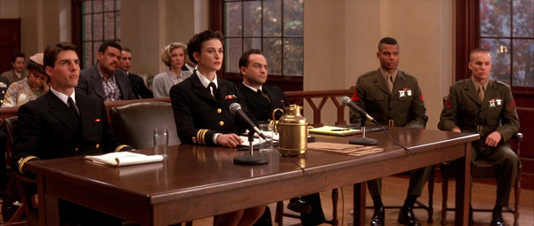法庭片一直在好萊塢眾多影片中占有重要位置,它們從另一個(gè)側(cè)面反映社會(huì)犯罪和政府腐敗。由于它減少了暴力宣揚(yáng),而著力體現(xiàn)斗智過程,雖不刺激但緊張?bào)@險(xiǎn)激烈并不亞于驚險(xiǎn)片、動(dòng)作片,因此,亦大受歡迎?!读x海雄風(fēng)》又是其中反映軍隊(duì)生活的法庭電影。