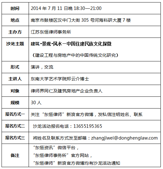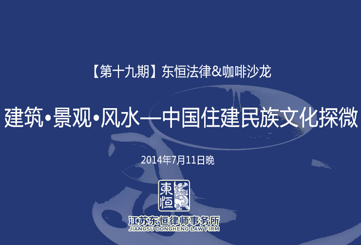 江蘇法德東恒律師事務(wù)所第十九期“法德東恒法律&咖啡沙龍”將于本周五晚舉行,本期沙龍由東南大學(xué)藝術(shù)學(xué)院鄭云介博士主講“建設(shè)工程與房地產(chǎn)中的中國(guó)傳統(tǒng)文化研究”,歡迎感興趣的朋友參加!