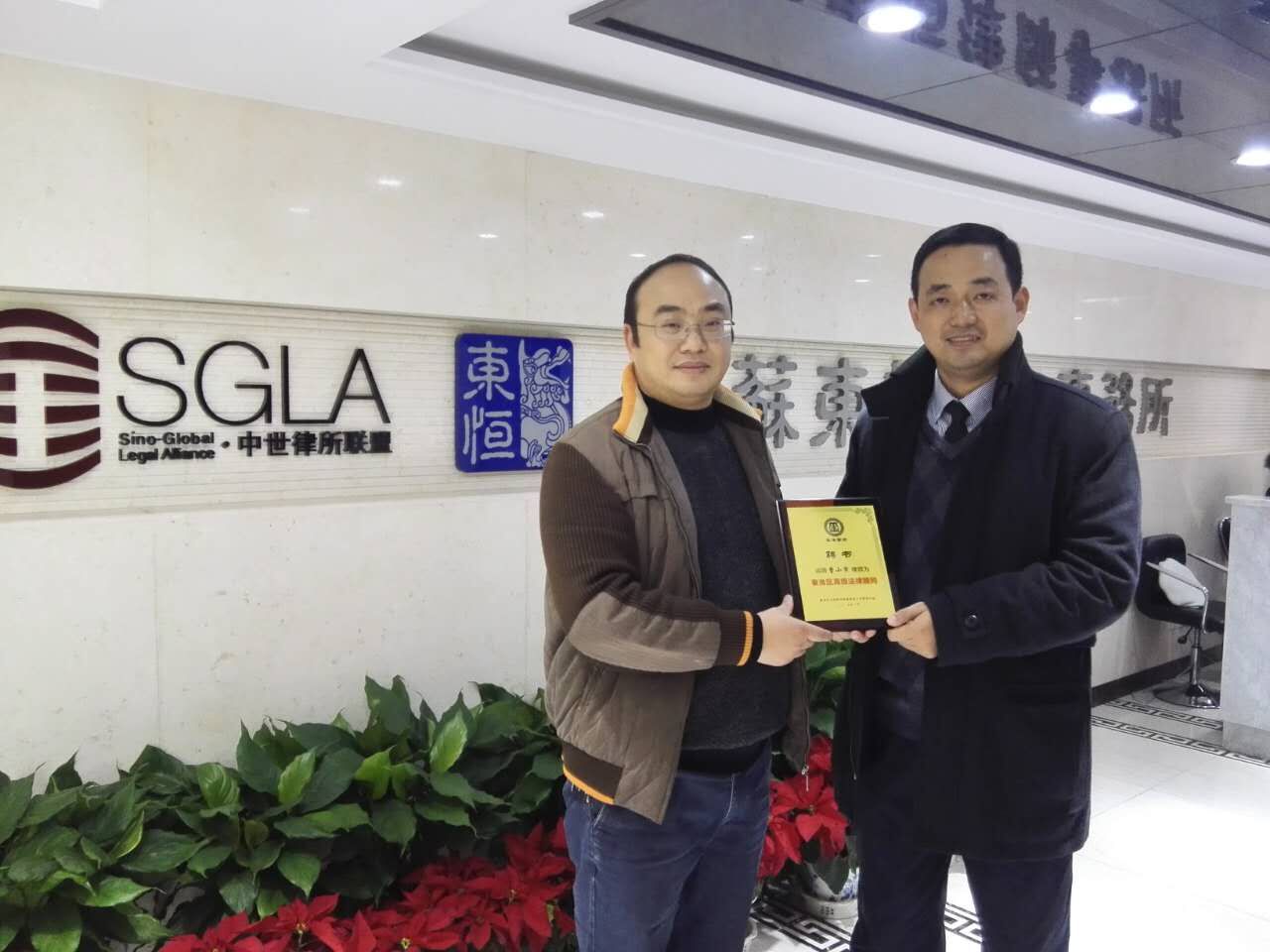 2015年12月4日,江蘇法德東恒律師事務(wù)所張利軍主任、曹小寅書記獲聘秦淮區(qū)政府法律顧問,南京市秦淮區(qū)司法局副局長張源蒞臨江蘇法德東恒律師事務(wù)所并給張利軍主任、曹小寅書記頒發(fā)聘書。
