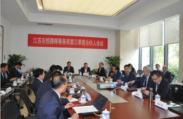 江蘇法德東恒律師事務(wù)所2017年第三季度合伙人會(huì)議于10月22日在江北新區(qū)辦公室隆重召開,來自南京辦公室、蘇州辦公室、徐州辦公室以及江北新區(qū)辦公室的30余名合伙人參加會(huì)議。南京市司法局律管處丁勇處長、中世律所聯(lián)盟天津四方君匯律師事務(wù)所高級(jí)合伙人邊崢律師受邀全程參會(huì)。