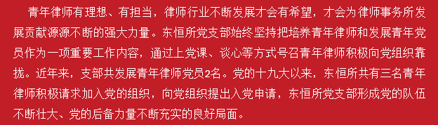 四、號召青年律師積極加入黨的組織,為事務(wù)所發(fā)展儲備力量。