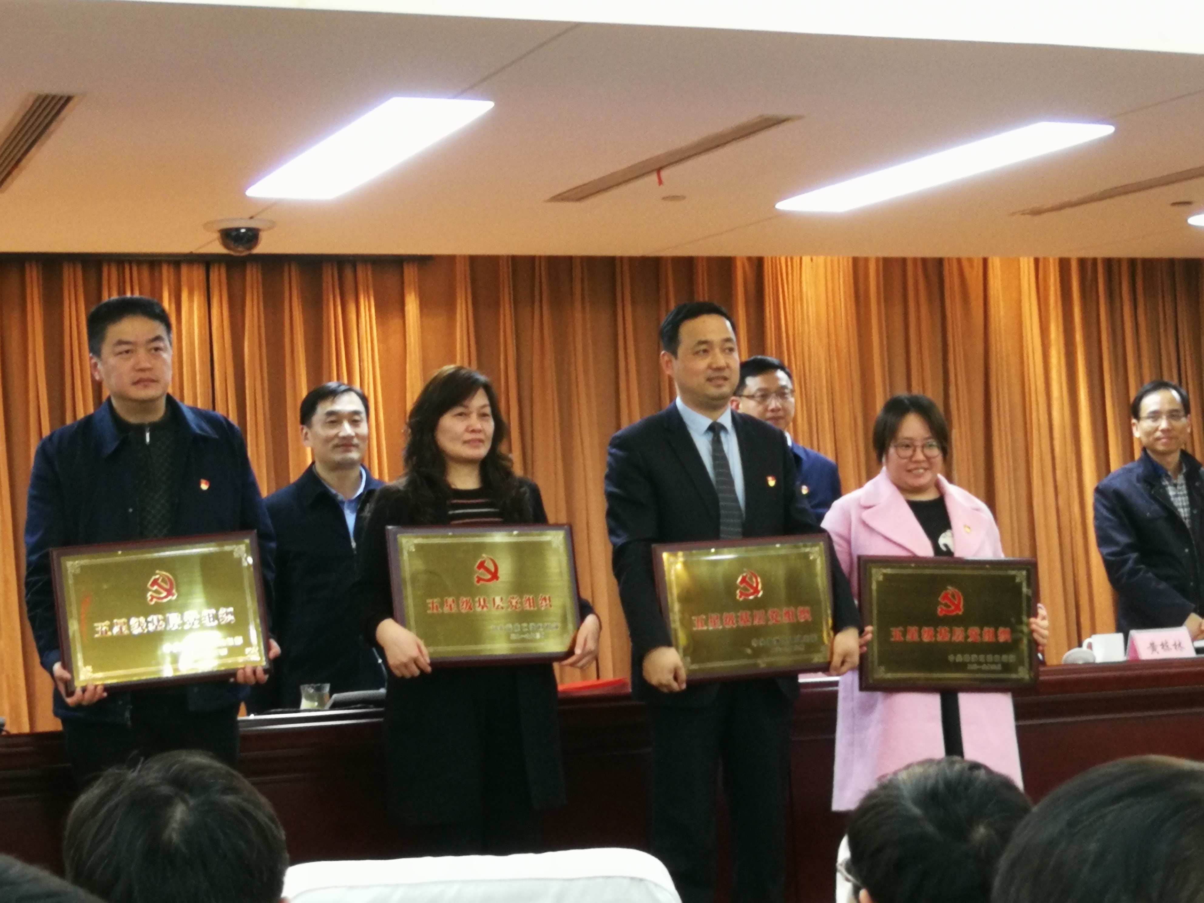 △法德東恒所黨支部書記曹小寅(左三)在2019年全區(qū)黨建工作領(lǐng)導小組會暨組織、統(tǒng)戰(zhàn)工作部署會上接受表彰