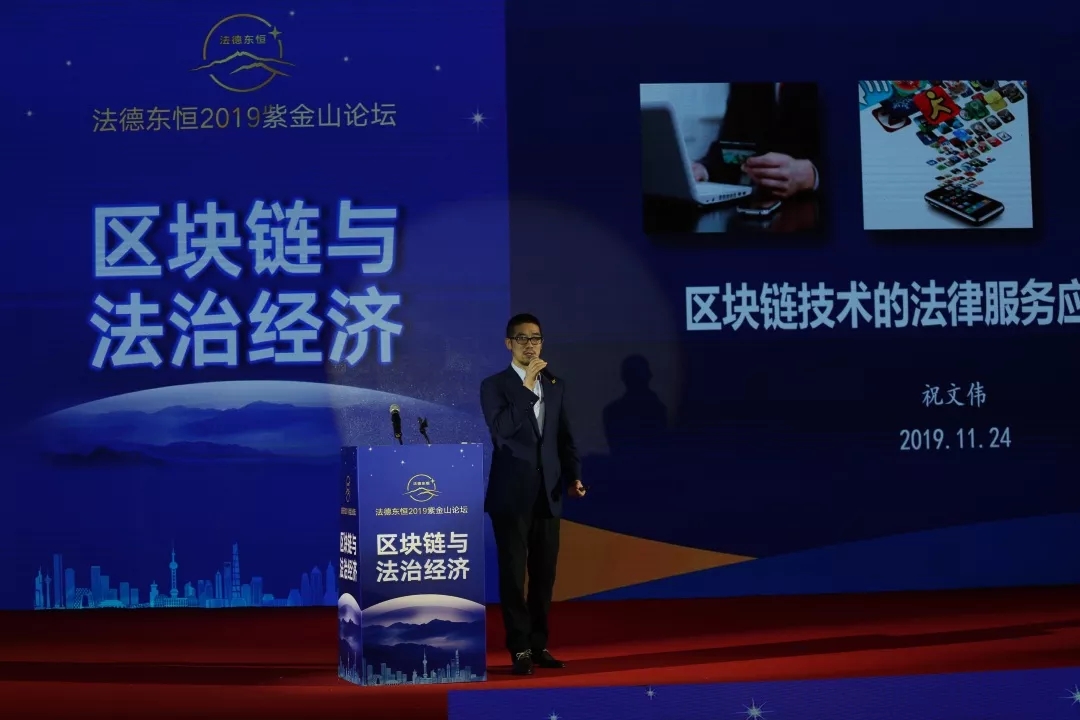 上海區(qū)塊鏈技術(shù)中心副主任祝文偉對(duì)區(qū)塊鏈技術(shù)進(jìn)行了專(zhuān)業(yè)解讀,并就區(qū)塊鏈背后蘊(yùn)含的法律變革與新時(shí)代下法律制度與新技術(shù)的自洽和諧,帶來(lái)了《區(qū)塊鏈技術(shù)的法律服務(wù)應(yīng)用與挑戰(zhàn)》的主旨演講。