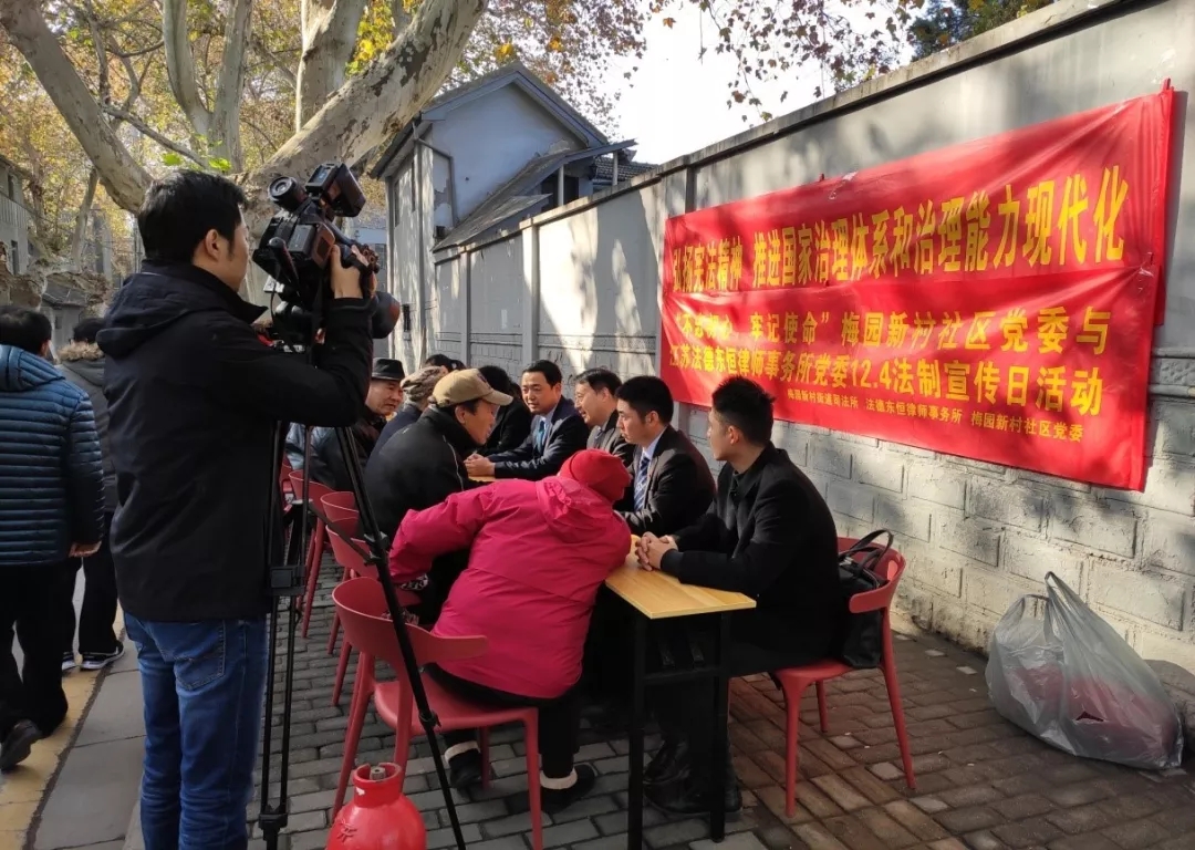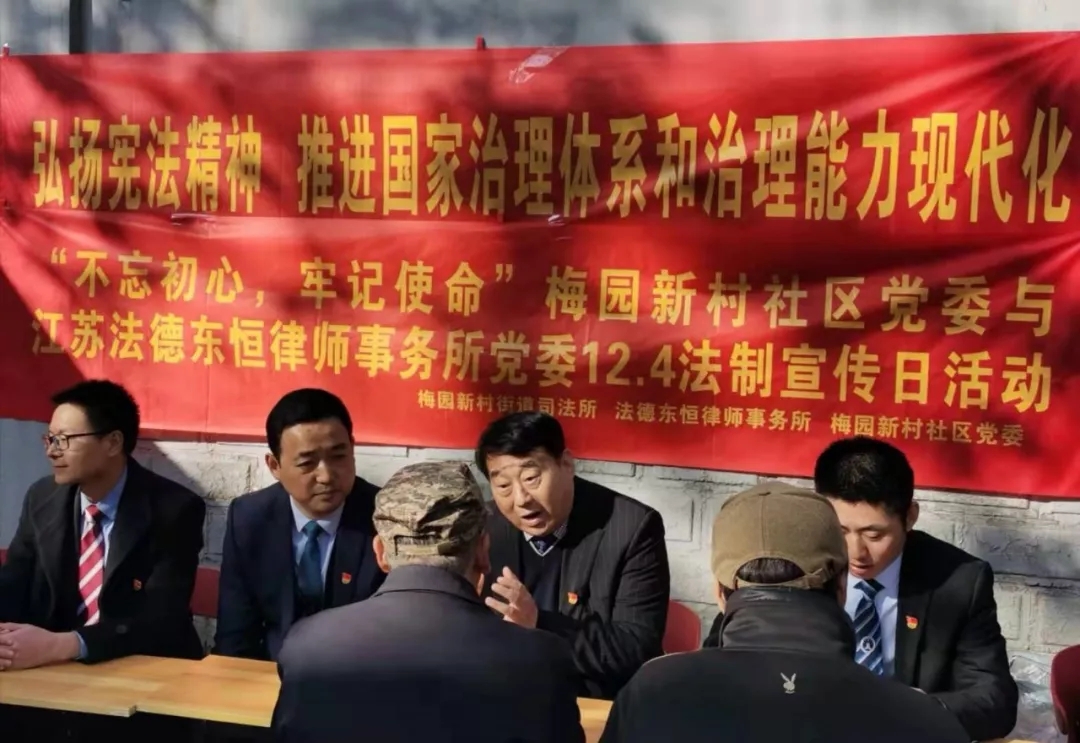 12月4日是我國現(xiàn)行憲法的實施日,也是國家法制宣傳日。江蘇法德東恒律師事務所黨委與梅園新村社區(qū)黨委聯(lián)合開展了“不忘初心、牢記使命”法制宣傳日活動,向社區(qū)干部、群眾普及法律知識,解答法律問題。