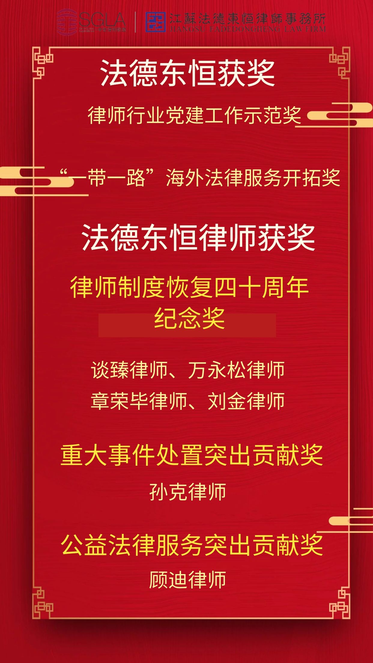 法德東恒在江蘇省律師制度恢復(fù)40周年主題報(bào)告會(huì)上獲多項(xiàng)殊榮