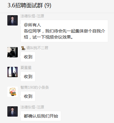 3月6日,法德東恒首場(chǎng)線上面試正式拉開(kāi)了序幕。本著“公平,公正,公開(kāi)”的面試原則,法德東恒高級(jí)合伙人汪源提前測(cè)試線上面試效果,確保面試過(guò)程的流暢性。