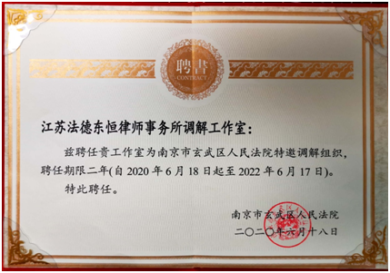 法德東恒律師調(diào)解工作室受聘擔(dān)任南京市玄武區(qū)人民法院特邀調(diào)解組織