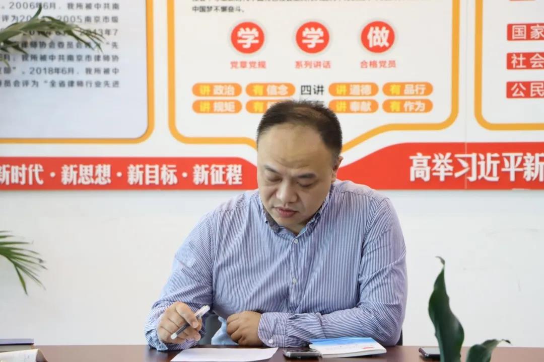 黨委委員陸發(fā)達(dá)傳達(dá)了江蘇省司法廳關(guān)于全省律師行業(yè)突出問題專項治理自查核查推進(jìn)會議精神及南京市關(guān)于全市律師行業(yè)突出問題專項治理自查核查階段實施方案精神,強調(diào)了“自查從寬、被查從嚴(yán)”政策的重要性,要求每一位黨員都要把會議精神落實到位。