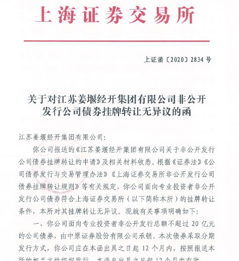 法德東恒律師事務所接受江蘇姜堰經開集團有限公司(簡稱姜堰經開集團或發(fā)行人)的委托,擔任其在上海證券交易所非公開發(fā)行不超過20億元公司債券的專項法律顧問,并組成項目組對發(fā)行人進行盡職調查,為發(fā)行人本次發(fā)行出具了法律意見書,并針對上海證券交易所的反饋意見出具了補充法律意見書進行回復,通過與主承銷商等其他機構努力合作,上海證券交易所于2020年12月17日出具了上證函[2020]2834號的《無異議函》,同意姜堰經開集團面向合格投資者非公開發(fā)行不超過20億元公司債券,并在無異議函出具之日起12個月內分期發(fā)行。
