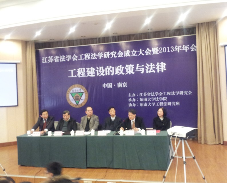 2013年12月28日,江蘇省法學(xué)會(huì)工程法學(xué)研究會(huì)暨2013年年會(huì)在東南大學(xué)正式成立和舉辦。著名法學(xué)家、中國(guó)政法大學(xué)終生教授、博士生導(dǎo)師應(yīng)松年先生,民法學(xué)專家、臺(tái)灣國(guó)立政治大學(xué)終生教授、原臺(tái)灣工程法學(xué)研究會(huì)首屆會(huì)長(zhǎng)黃立先生以及我省司法、政府部門等100余名同仁參會(huì)。